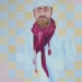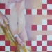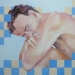 Onderlichaam bedekt met een doek/vlag waarop ster. Geheel gevangen in een onmogelijk blokkenpatroon